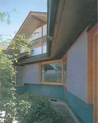 木製サッシから差し込む光は、室内の木の壁や床に反射し、空間全体を包み込むように穏やかに広がり、安らぎを深めます。外からの視線を遮りながらも、光と風を取り込む窓辺の設計が、住む人の心に安らぎと落ち着きをもたらします。